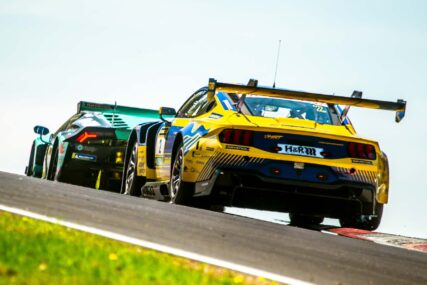 Pünktlich um 12:00 Uhr fiel der Startschuss zum vierstündigen Spektakel. Der Audi #8 verteidigte die Spitze zunächst souverän gegen den Ford Mustang GT3 (#2) von HRT FORD Performance, ehe sich in der zweiten Runde Heinemann/Marschall im Porsche #4 an Boccolacci/Picariello (#3) vorbeischoben und Platz 3 übernahmen. Nur wenige Kurven später blieb der Porsche #54 (Buus/Sturm) aufgrund eines technischen Defekts auf der Strecke stehen was eine Code 60-Phase im Bereich Hohen Acht war die Folge, die das Feld kurz wieder zusammenrücken ließ.
