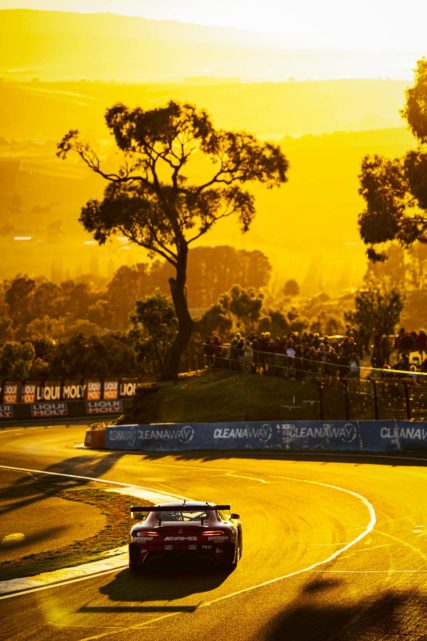 Im Anschluss versuchte Maro Engel den in Führung liegenden und langsameren Jules Gounon nach der schnellen Conrod Straight in The Chase zu überholen, wobei sich Gounon von der Strecke drehte und Engel sich eine Durchfahrtsstrafe einhandelte. Unbeeindruckt davon fuhr der grüne Manthey EMA Motorsport „Grello“ #912 mit Thomas Praining, Mathieu Jaminet und Lokalmatator Matt Campbell am Steuer zu einem exzellten 2. Platz. Zwar konnte Engel in den letzten Rennrunden wieder auf Schlussfahrer Campbell im Porsche anschließen, vorbeiziehen konnte der Wahl Monegasse allerdings nicht mehr. In Ziel trennten die Podiumsplätze der Gesamtwertung am Ende lediglich 1,5 Sekunden.