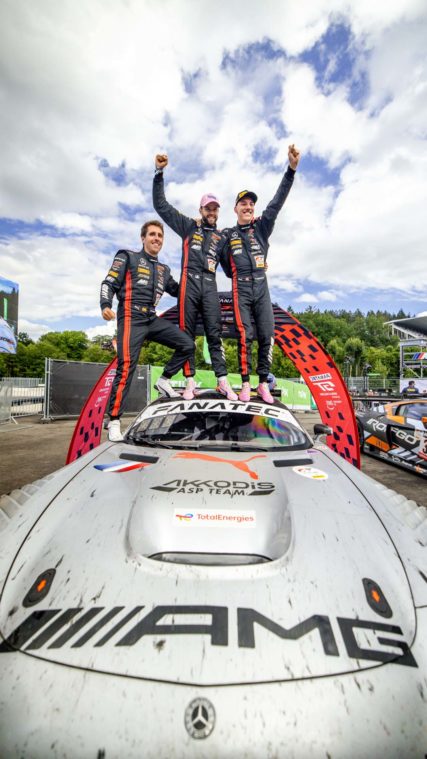 Raffaele Marciello, Jules Gounon und Dani Juncadella sichern sich einen, wie immer, hart umkämpften Sieg in Spa. Nach den Akkordis ASP Piloten auf der #88 kamen Luca Stolz, Steijn Schothorst und Maximilian Götz im Getspeed AMG #2 ins Ziel. P3 Gesamt ging an die #71 Iron.Lynx Ferrari Mannen: Antonio Fuoco, Daniel Serra & Davide Rigon.