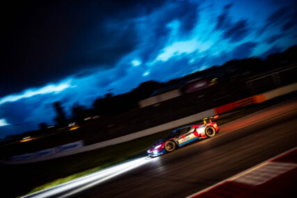 The race began with strong early pace from pole-sitters TFT Racing, as Maro Engel led in the opening stint. Strategy and multiple Code 60 periods soon shuffled the order. As night fell, teams like HAAS RT, Continental Racing, Juta Racing, and HOFOR Racing emerged as key contenders. Scuderia Praha’s Ferrari suffered a major setback with power steering issues, effectively ending their title hopes. Through the night, HOFOR Racing steadily gained ground, while others like TFT suffered mishaps, including a gravel excursion by Benjamin Paque.