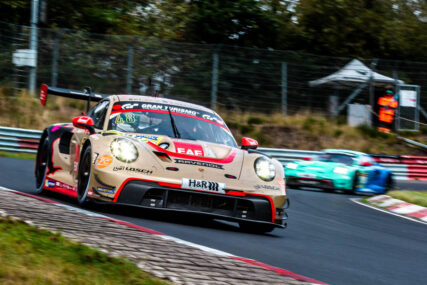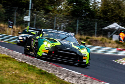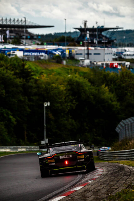 Für Spannung sorgten dann zwischen drin Christian Krognes im Walkenhorst Aston Matin Vantage GT3 der sich erbittere Kämpfe mit dem Blackfalcon Porsche um den letzten Platz auf dem Podium lieferte, bevor das Typische Eifelwetter gegen Ende nochmals mit einem Regenschauer für Spannung und ordentlich Schreckmomente auch bei den Führenden Falken-Porsche sorgte.