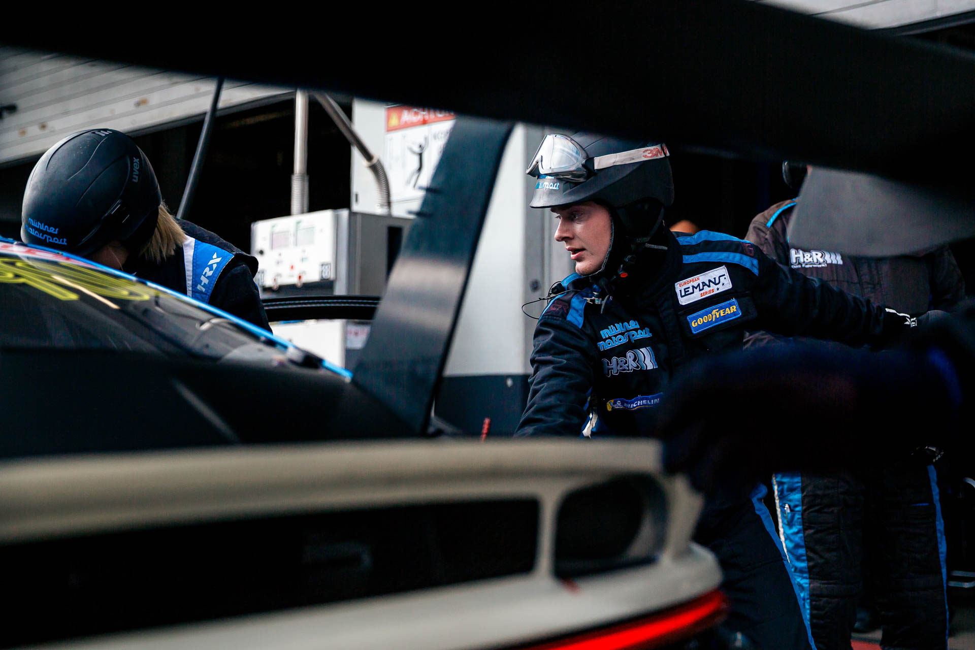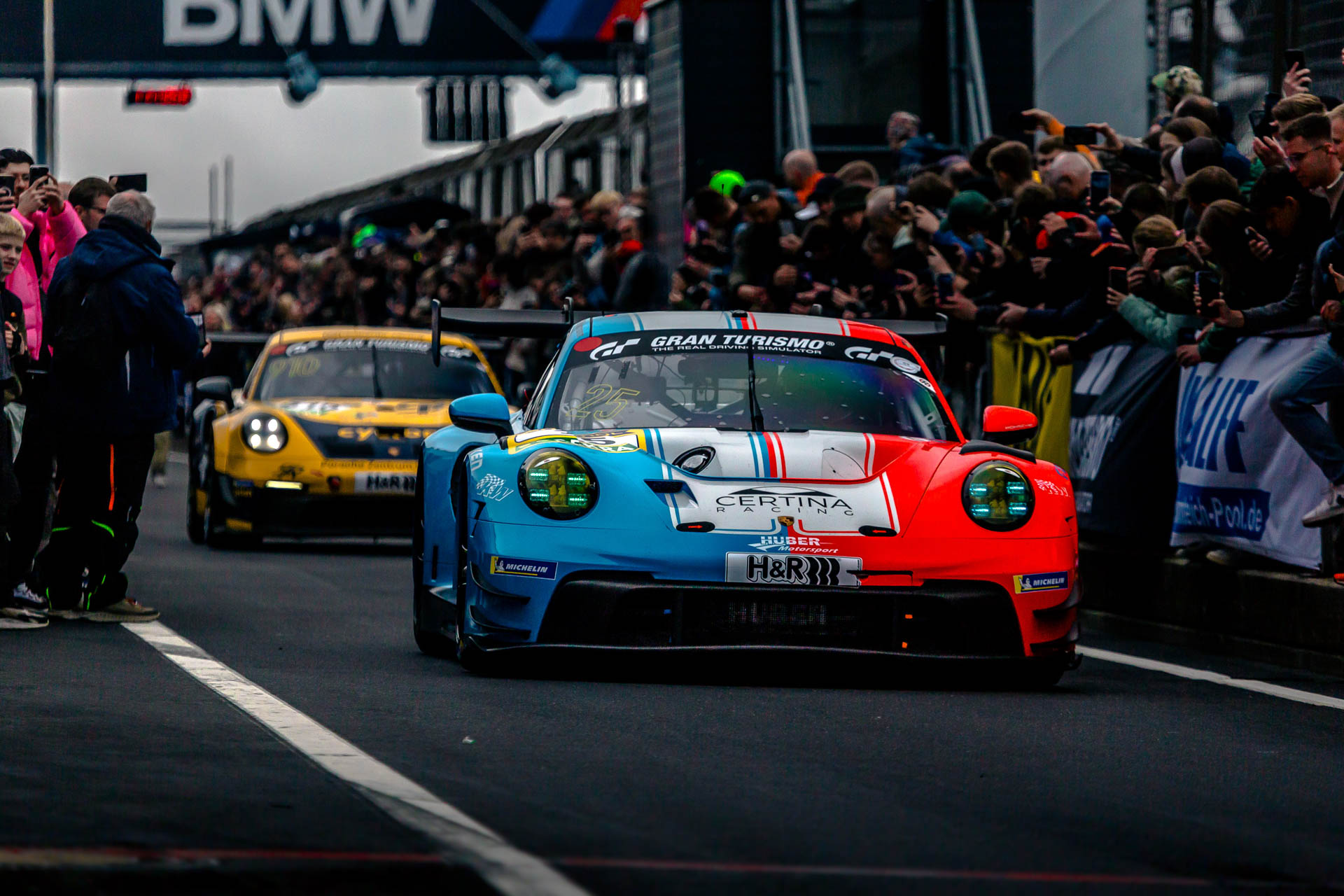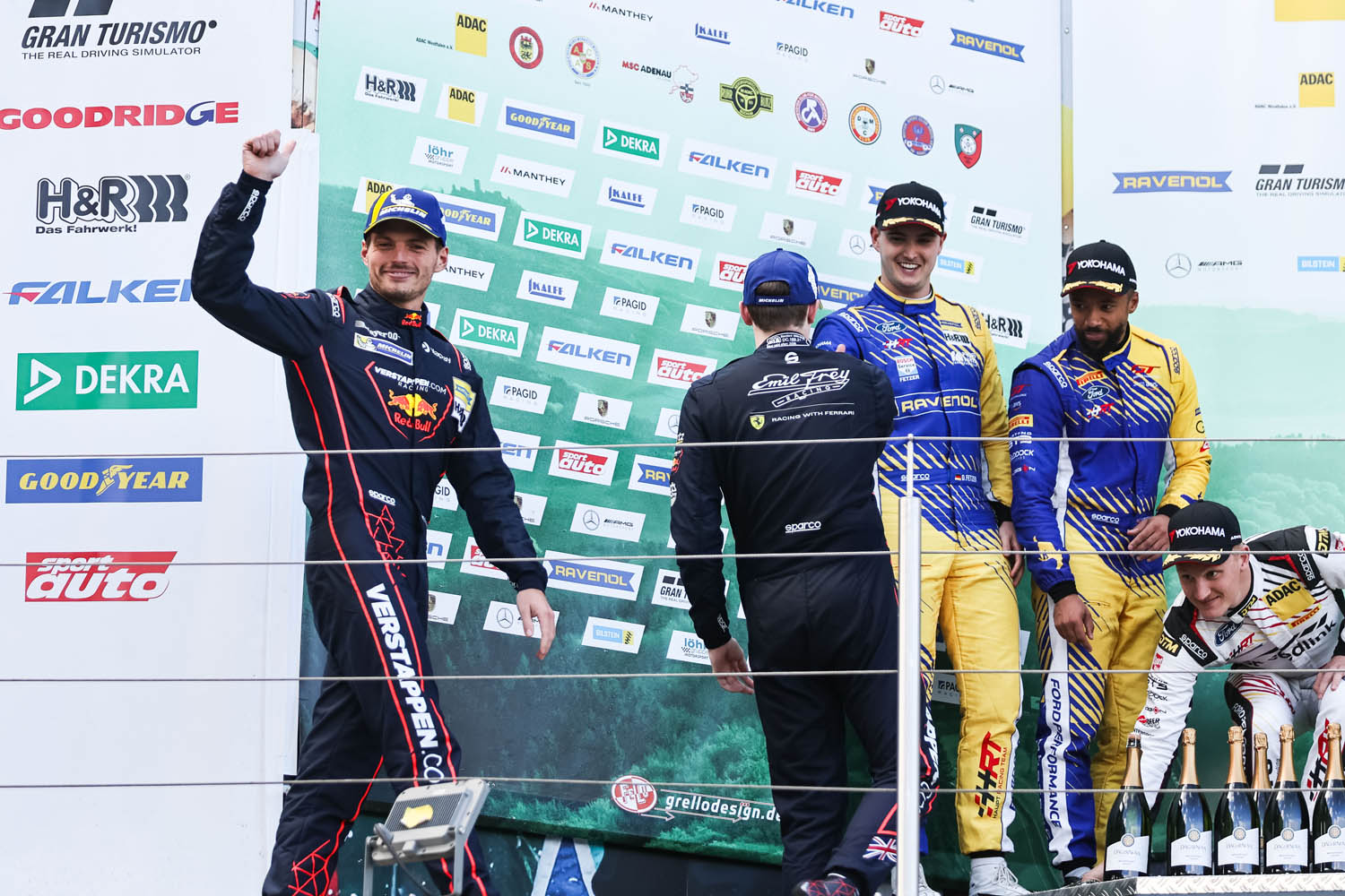 Bereits im Qualifying ließ Verstappen aufhorchen als er auf abtrocknender Strecke knapp die Poleposition verpasste. Diese schnappte sich der erfahrene Walkenhorst Aston Martin Pilot Christian Krognes im Pro-AM gemeldeten Vantage GT3 #34. Für Max ging es von Position 3 ins Rennen ebenfalls noch vor ihm startete einer der erfahrensden Fahrer der Nordschleife – Frank Stippler – er stellte bei einem weiteren seiner Doppelstarts den JUTA Racing Audi R8 noch auf P2 in die Startaufstellung. Stippler stand zusammen mit Vincent Kolb im 2. HRT Mustang GT3 #6 am Ende auf Position 3 gesamt mit auf dem Podium.